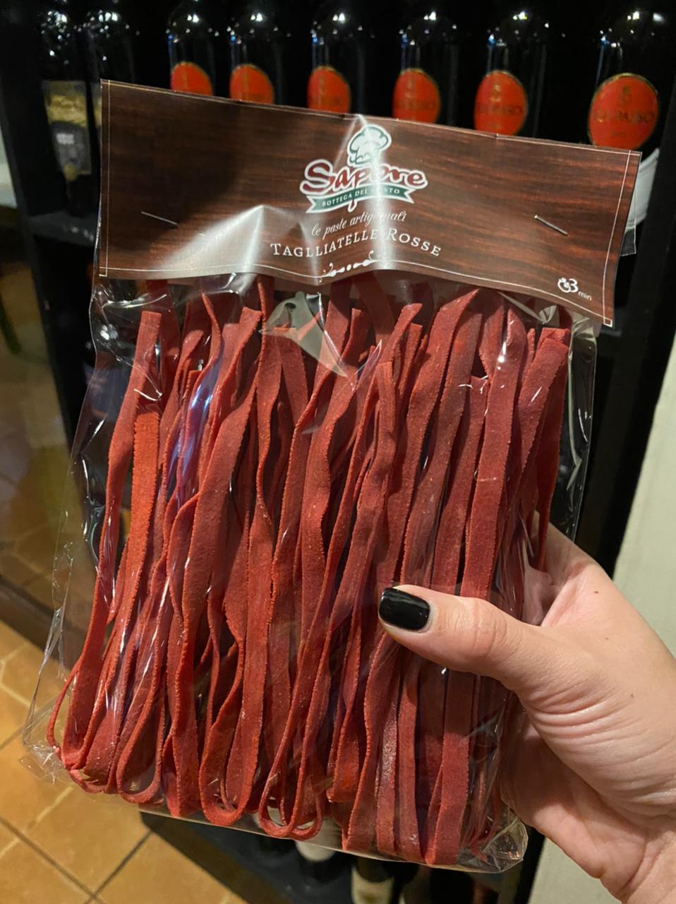 Yo aproveché para llevarme a casa una pasta roja hecha a base de tomate, que me recomendaron combinar con salsa puttanesca, que conseguí enfrascada y súper fresca en la misma tiendita. Me gustó tanto el vino, que también me llevé a casa una botella para seguir disfrutando de su suave sabor.