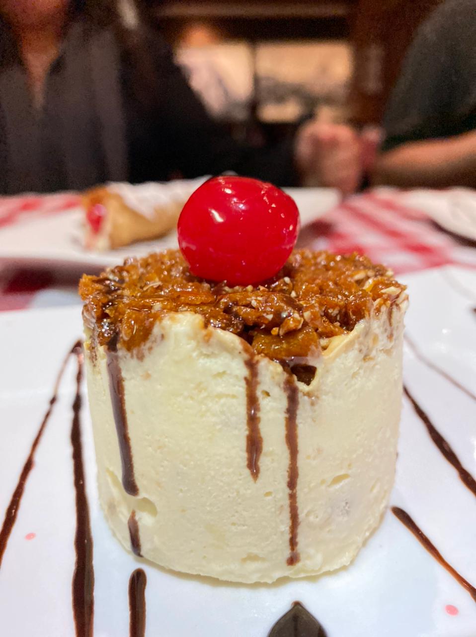 Cerramos la noche con una sorpresa de David; un despliegue de deliciosos postres italianos: un auténtico cannolo siciliano, un maravilloso tiramisu y un semifredo al torrone; un cremoso helado con una capa de turrón crujiente.